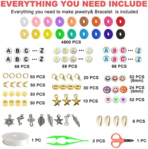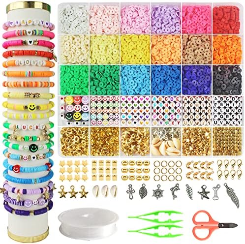 Hbnlai 5300 Clay Beads Bracelet Making Kit, Friendship Bracelet Kits Flat Preppy